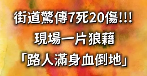 快訊/街道驚傳7死20傷!!! 現場一片狼藉「路人滿身血倒地」