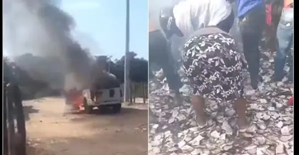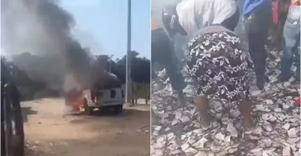 歹徒搶運鈔車 鈔票撒滿地 村民瘋搶
