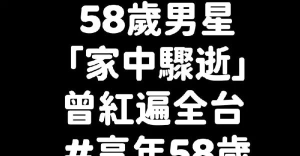 震驚演藝圈!58歲男星「家中驟逝」曾紅遍全台 #享年58歲..............