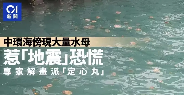 香港中環一帶海傍,今午現大量水母惹「大地震」恐慌港人驚慌失挫