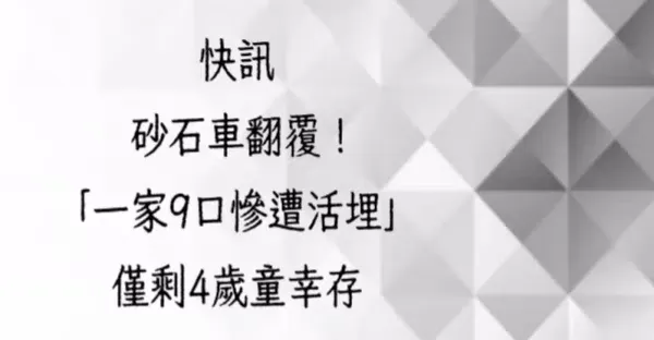 快訊/砂石車翻覆!「一家9口慘遭活埋」僅剩4歲童倖存……