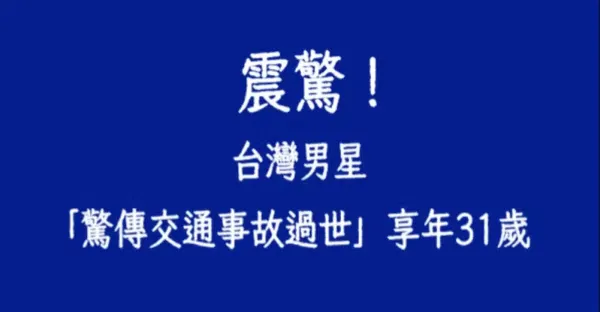 震驚!台灣男星「驚傳交通事故過世」享年31!