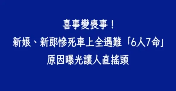 喜事變喪事!新娘、新郎慘死車上全遇難「6人7命」原因曝光讓人直搖頭!