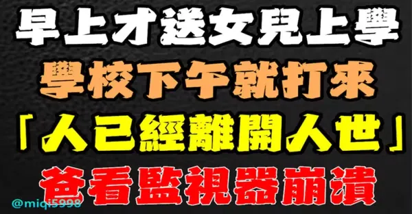 早上才送女兒上學!學校下午就打來「人已經離開人世」爸看監視器崩潰