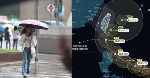 快訊 / 銀杏恐轉中台!今12縣市10級強風來襲「周末雨區再擴大」 2地防強降雨