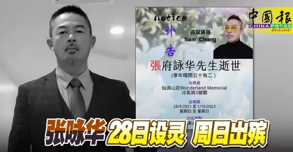 張詠華28日設靈 周日出殯