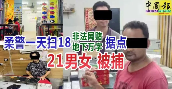 柔警一天掃18 非法網賭 地下萬字 據點 21男女 被捕