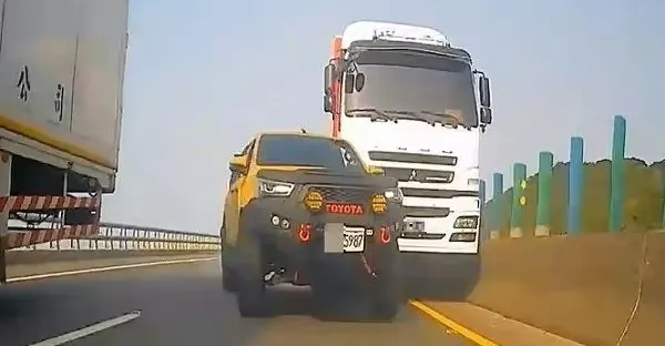 2噸皮卡「對決」10噸貨車飆台61線互不讓 網見悽慘下場諷:好有勇氣