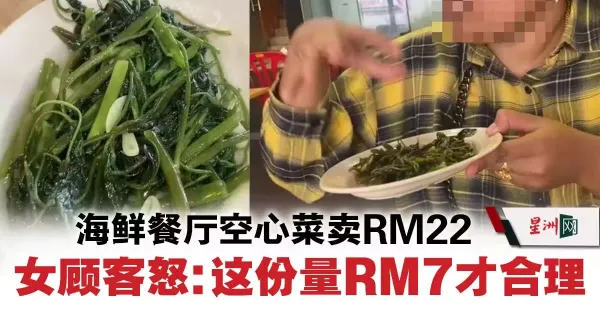 海鮮餐廳空心菜賣RM22 女顧客怒:這份量RM7才合理!