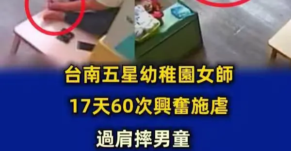 台南五星幼稚園女師17天60次興奮施虐,過肩摔男童「摳完腳髒手餵食全班」家長崩潰: 難怪兒子每晚做惡夢
