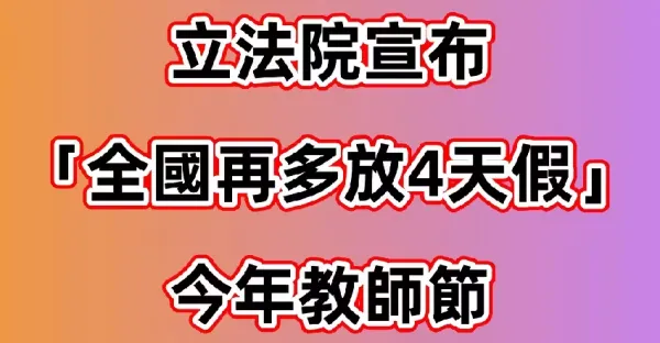 快訊/三讀通過!立法院宣布「全國再多放4天假」 今年教師節「全民放假」