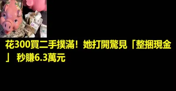 花300買二手撲滿!她打開驚見「整捆現金」 秒賺6.3萬元