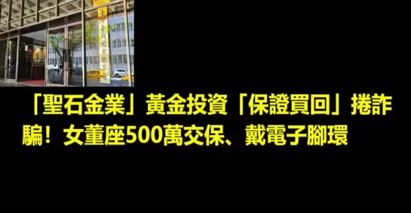 「聖石金業」黃金投資「保證買回」卷詐騙!女董座500萬交保、戴電子腳環