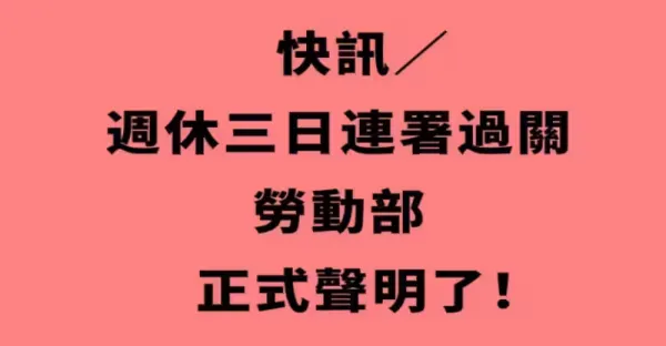 快訊/周休三日連署過關,勞動部正式聲明了!!