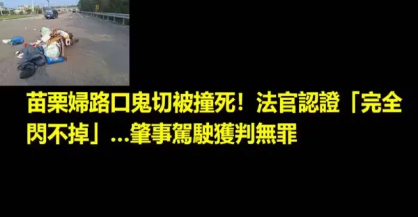 苗栗婦路口鬼切被撞死!法官認證「完全閃不掉」…肇事駕駛獲判無罪