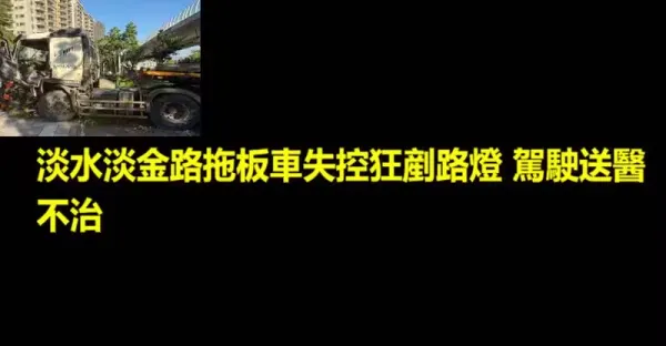 淡水淡金路拖板車失控狂鏟路燈 駕駛送醫不治