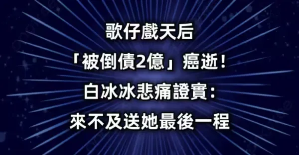 突發/歌仔戲天后「被倒債2億」癌逝!白冰冰悲痛證實:來不及送她最後一程