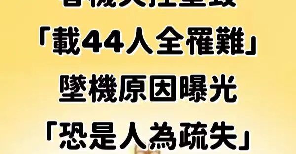 快訊/客機失控墜毀「載44人全罹難」!墜機原因曝光「恐是人為疏失」