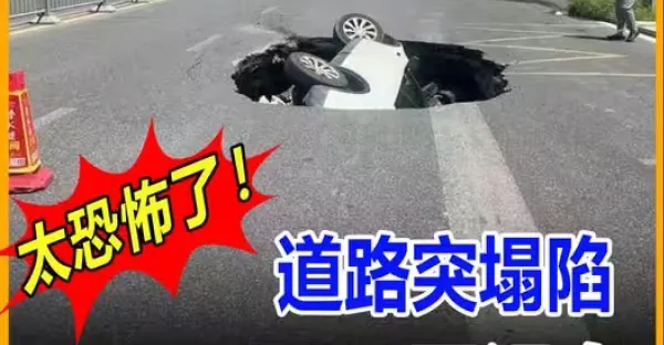 太恐怖了!道路突塌陷 開口吞沒車
