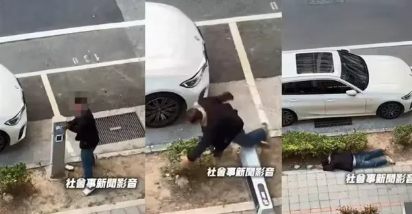 影/怎麼了?台南55歲男失控「踢踹狂揍停車柱」全爛了…下秒仆街失控吶喊