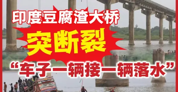 印度豆腐渣大橋突斷裂 「車子一輛接一輛落水」