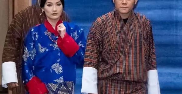 不丹王後恢複冰山臉,一襲黑喪服面色凝重,跟帥氣國王零交流