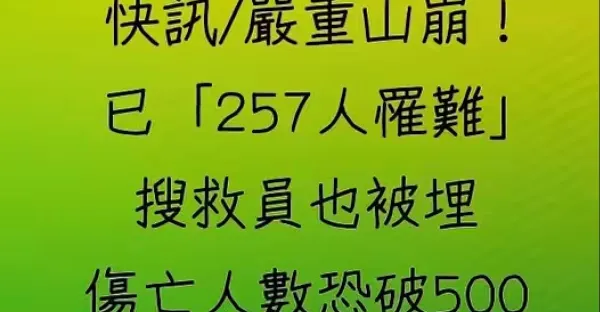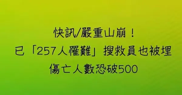 嚴重山崩!已「257人罹難」 搜救員也被埋 傷亡人數恐破500