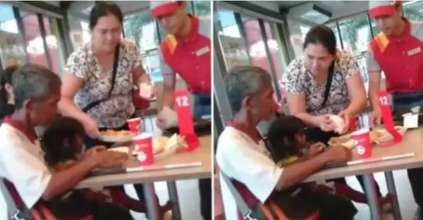 祖孫在速食店行乞!暖心婦一看到「免費請他們用餐」 祖孫含淚道謝「她再現貼心舉動」網超感動
