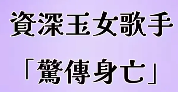快訊/資深玉女歌手「驚傳身亡」死因曝光!享壽59歲!