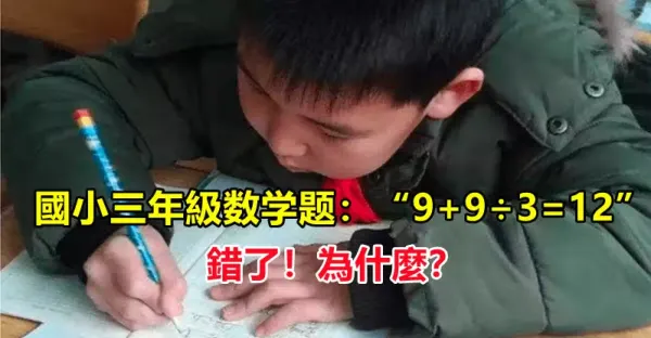 我兒子哪錯了?國小三年級數學題:「9+9÷3= 12」被老師打叉!家長質問老師「反被打臉」:好好審題
