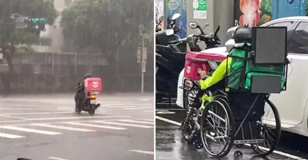 下雨天不休息!外送員「冒雨坐輪椅」努力跑單 一張照片感動千人:謝謝您