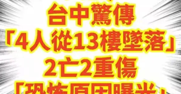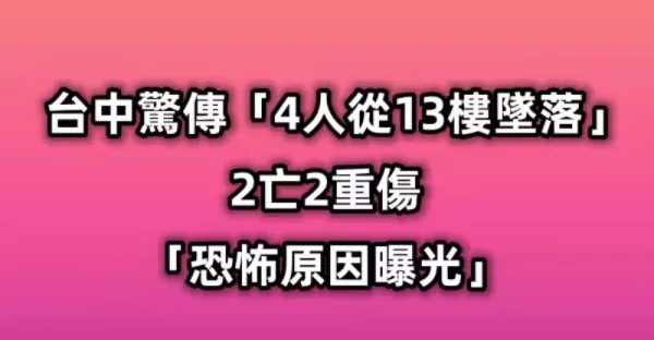 突發/台中驚傳,「4人從13樓墜落」!2亡2重傷「恐怖原因曝光」
