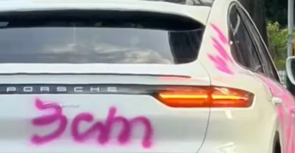 包養小三、渣男、3cm!保時捷慘遭噴漆路上跑 是她乾的