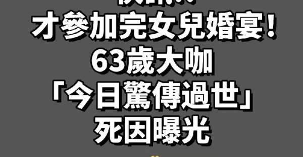 快訊/才參加完女兒婚宴!63歲大咖「今日驚傳過世」死因曝光~