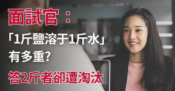 面試官:「1斤鹽溶於1斤水」有多重?答2斤者遭淘汰!