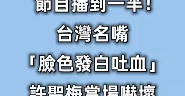 節目播到一半!台灣名嘴「臉色發白吐血」...許聖梅當場嚇壞!