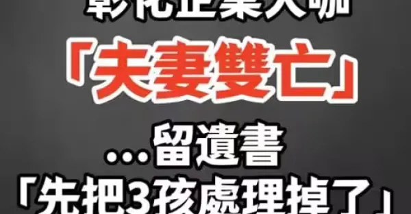 彰化企業大咖「夫妻雙亡!」留遺書「先把3孩處理掉了」