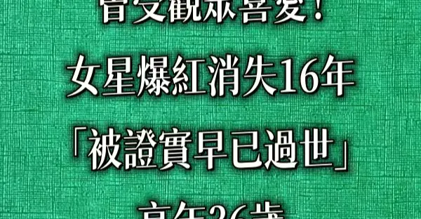 曾受觀眾喜愛!女星爆紅消失16年「被證實早已過世」享年36歲