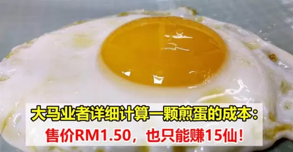 大馬業者詳細計算一顆煎蛋的成本:售價RM1.50,也只能賺15仙