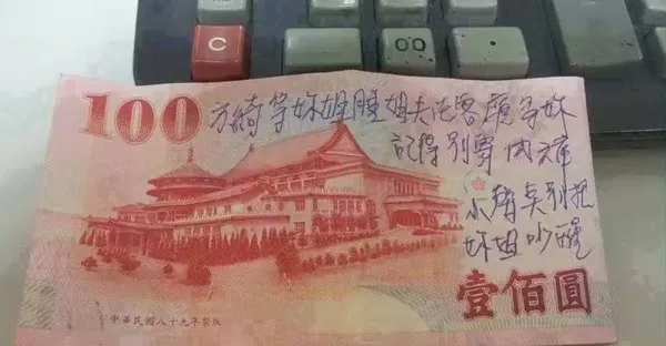 偷吃小姨子?100元鈔票上寫著「姐夫在客廳等你」 引網友論戰:加了標點符號變好老公