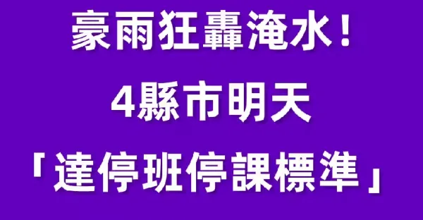 快訊/豪雨狂轟淹水!4縣市明天「達停班停課標準」 24小時估降400毫米!