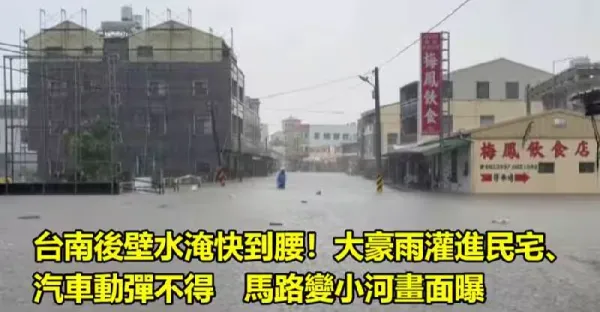 台南後壁水淹快到腰!大豪雨灌進民宅、汽車動彈不得,馬路變小河畫面曝!