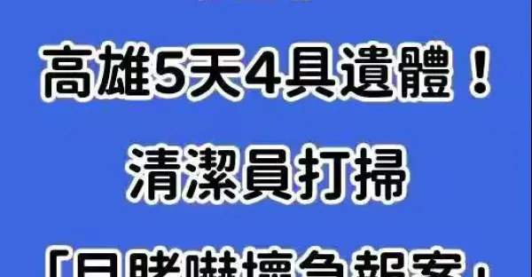 快訊/高雄5天4具遺體!清潔員打掃「目睹嚇壞急報案!」