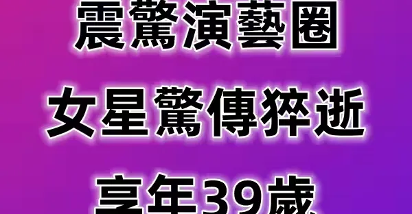 震驚演藝圈 女星驚傳猝逝 享年39歲