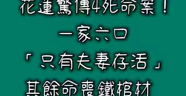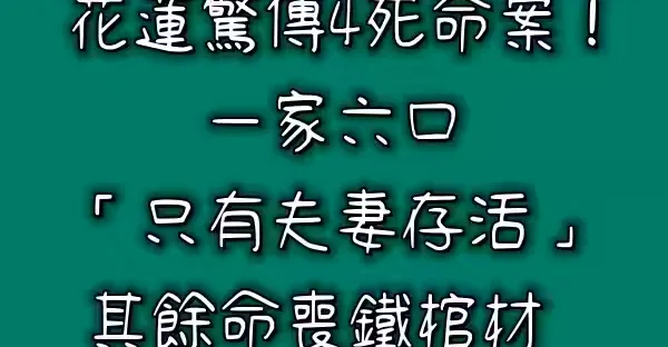 快訊/花蓮驚傳4死命案!一家六口「只有夫妻存活」其餘命喪鐵棺材~