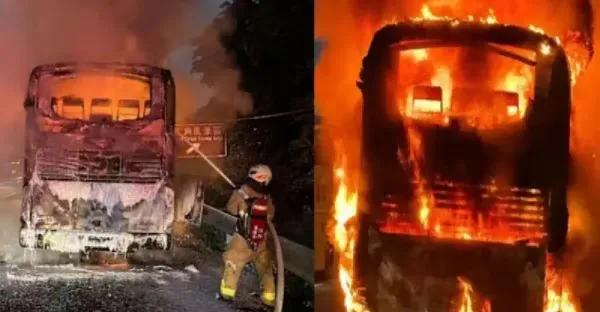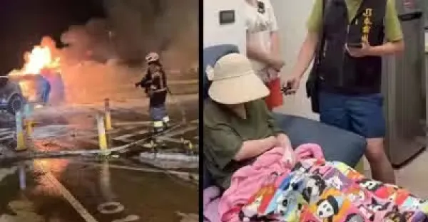 快訊/國道1號「43人客運」火燒車 火海瞬間吞沒車體!