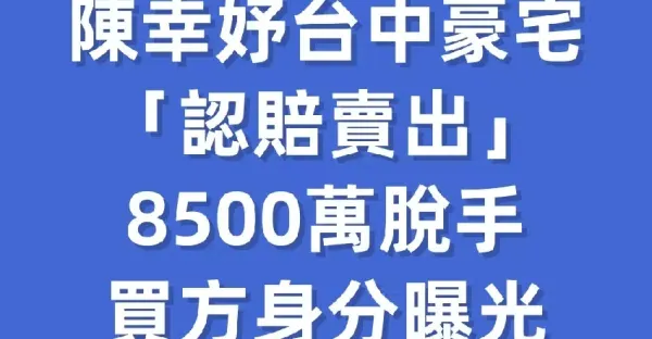 等了12年!陳幸妤台中豪宅「認賠賣出」8500萬脫手 買方身份曝光「花蓮超強大咖!」