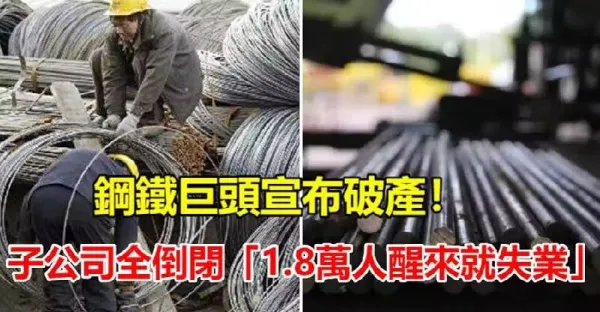 鋼鐵巨頭宣布破產,子公司全倒閉「1.8萬人醒來就失業」