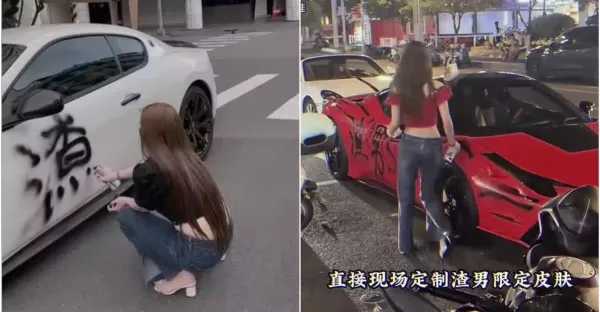 繼台灣超跑後換中國法拉利被噴「渣男」!網笑「長髮妹子有寫對」但下場慘了