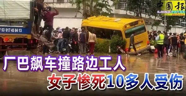 廠巴飆車撞路邊工人 女子慘死 10多人受傷